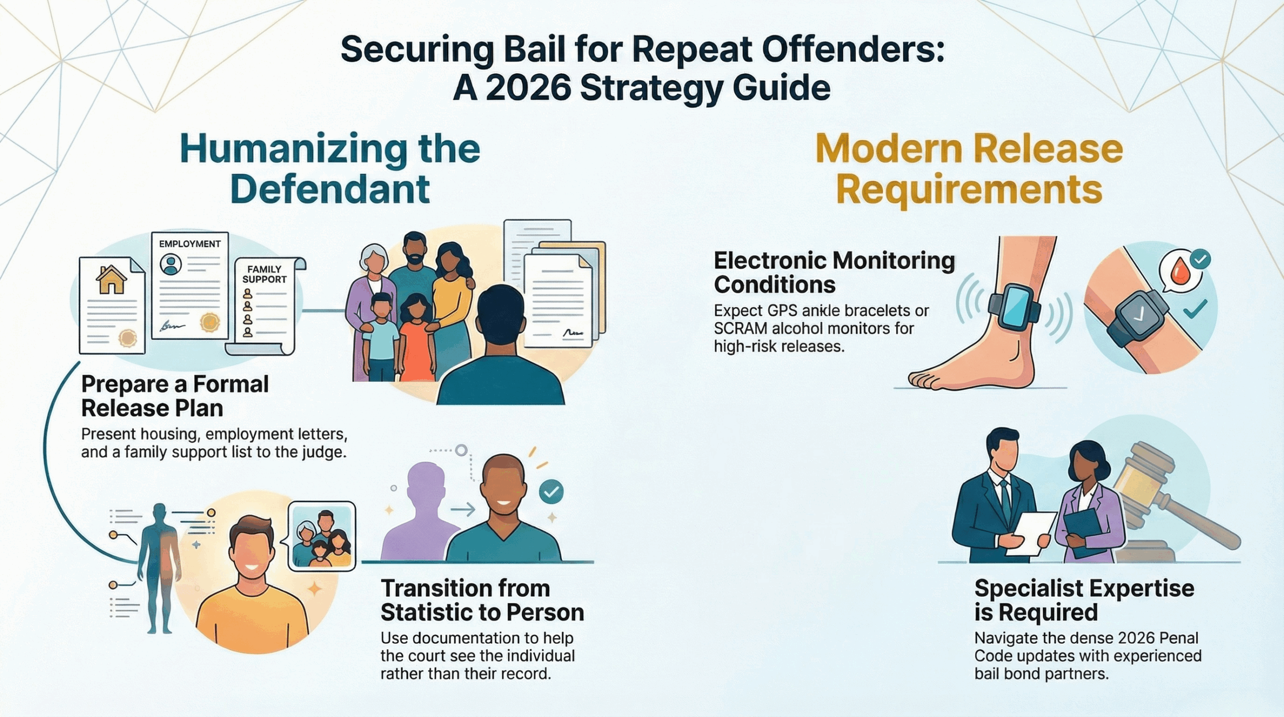 The Role of Electronic Monitoring In 2026, many repeat offenders are only granted bail on the condition of electronic monitoring. This may include GPS ankle bracelets or SCRAM (Secure Continuous Remote Alcohol Monitor) devices. While these come with a monthly cost, they are often the only way a judge will agree to release a high-risk defendant.