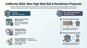 Retail Theft & “Smash and Grab” Enhancements To combat organized retail theft, California now allows for “aggregation.” If a repeat offender is caught stealing, the value of their past thefts can be added to the current charge. Under 2026 rules, repeat retail theft offenders face mandatory high-bail amounts to deter further “smash and grab” activity.