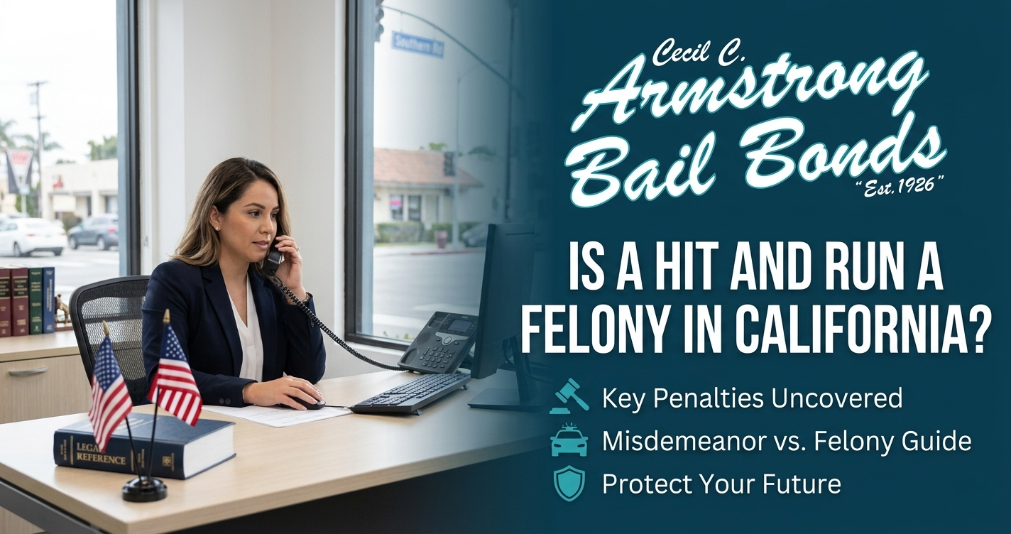 Whether you were involved in a minor fender bender or a serious collision, the legal fallout of leaving the scene can be life-altering. Understanding if a hit and run is a felony in California is the first step toward protecting your future, as the state imposes some of the nation’s strictest penalties for drivers who fail to stop. If you or a loved one is currently facing these charges, Armstrong Bail Bonds is available 24/7 to provide the fast release and expert guidance you need to navigate the California legal system.