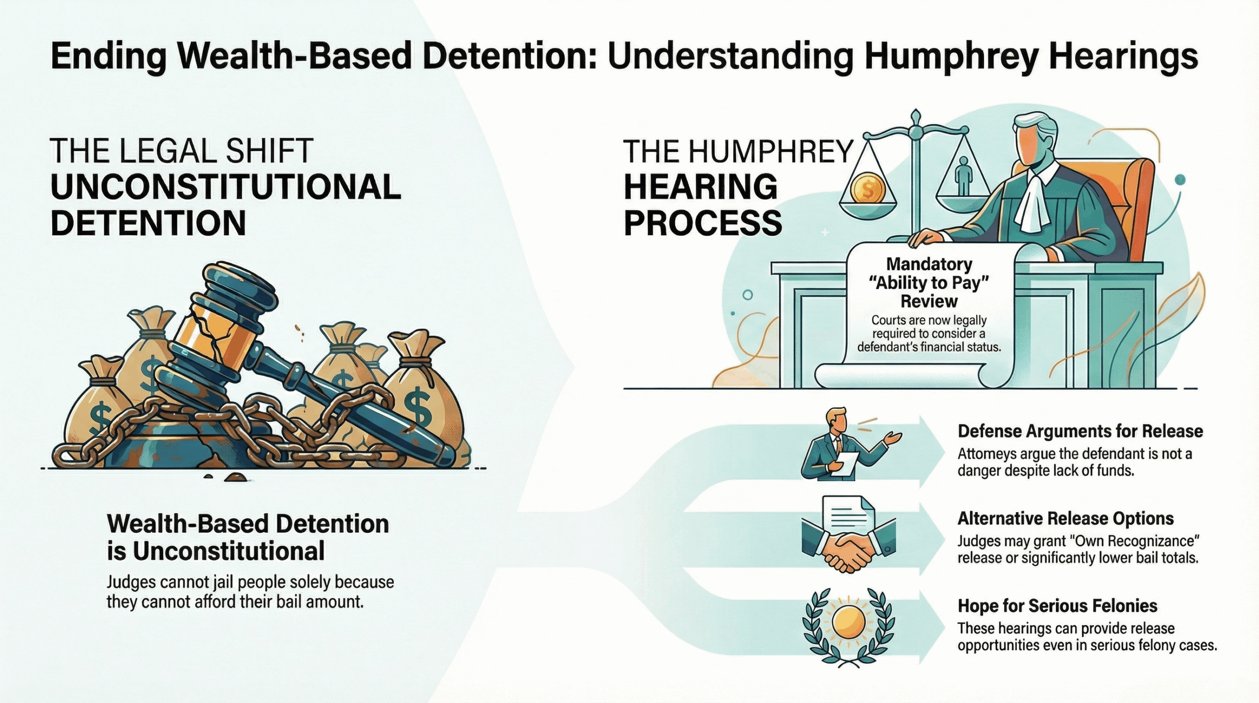 Now, judges must consider a defendant’s ability to pay. During a “Humphrey Hearing,” your attorney can argue that while you cannot afford a $50,000 bail, you are not a danger to society and should be released on your “Own Recognizance” (OR) or with a lower bail amount. This provides a glimmer of hope even in serious felony cases.